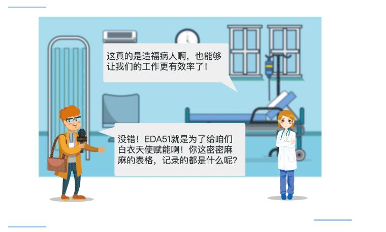 时至今日,护士工作中仍然有大量手写录入工作,如填写护理记录、医嘱转抄、校对等,出错几率较高。有了EDA51HC移动终端的帮助,便能将护士从繁重的护理记录中解脱出来。如护士在床旁进行体征采集后,在屏幕上轻触几下,则可直接将数据录入系统,不仅杜绝出错,也快速为医生的下一步治疗提供依据。